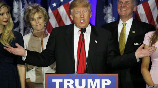 wapinzani wake Ted Cruz na Marco Rubio wakimfuatia kwa karibu.Kutokana na matokeo mabaya ya gavana wa zamani wa Florida, Jeb Bush, kakake aliyekuwa Rais wa Marekani George W. Bush, amejiondoa katika kinyanganyiro hicho.