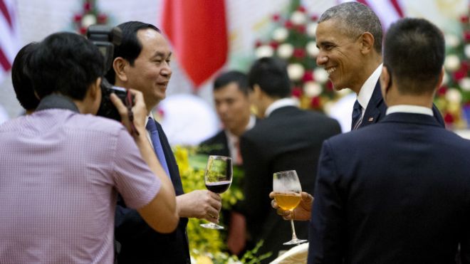 na uvamizi wa Marekani miaka ya sabini.Katika hotuba aliyoitoa katika mji mkuu Hanoi, Bwana Obama alisema kuwa kuboresha uhusiano wa kidiplomasia , miongo minne baada ya vita vya Vietnam, ni mfano bora wa uwiano.